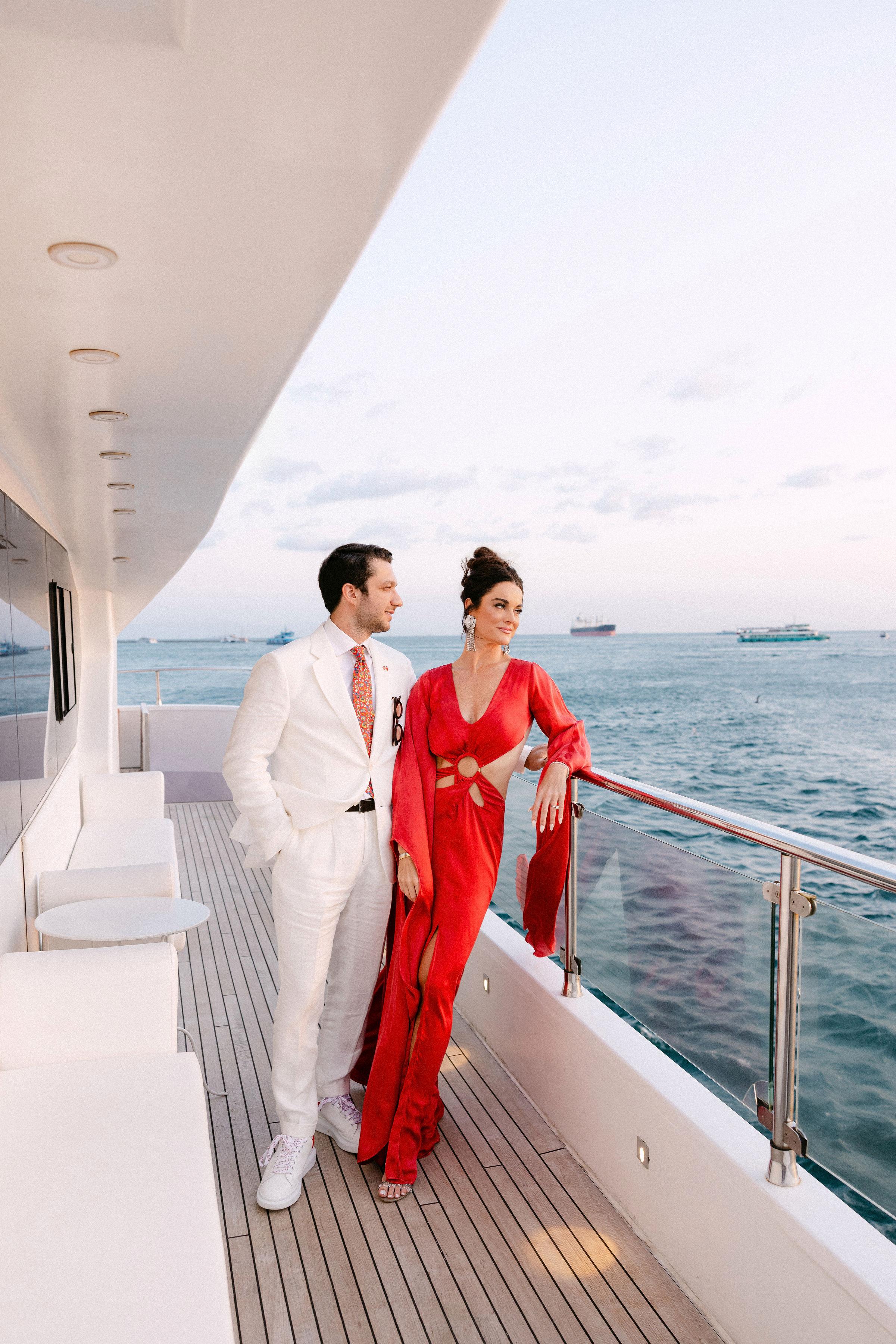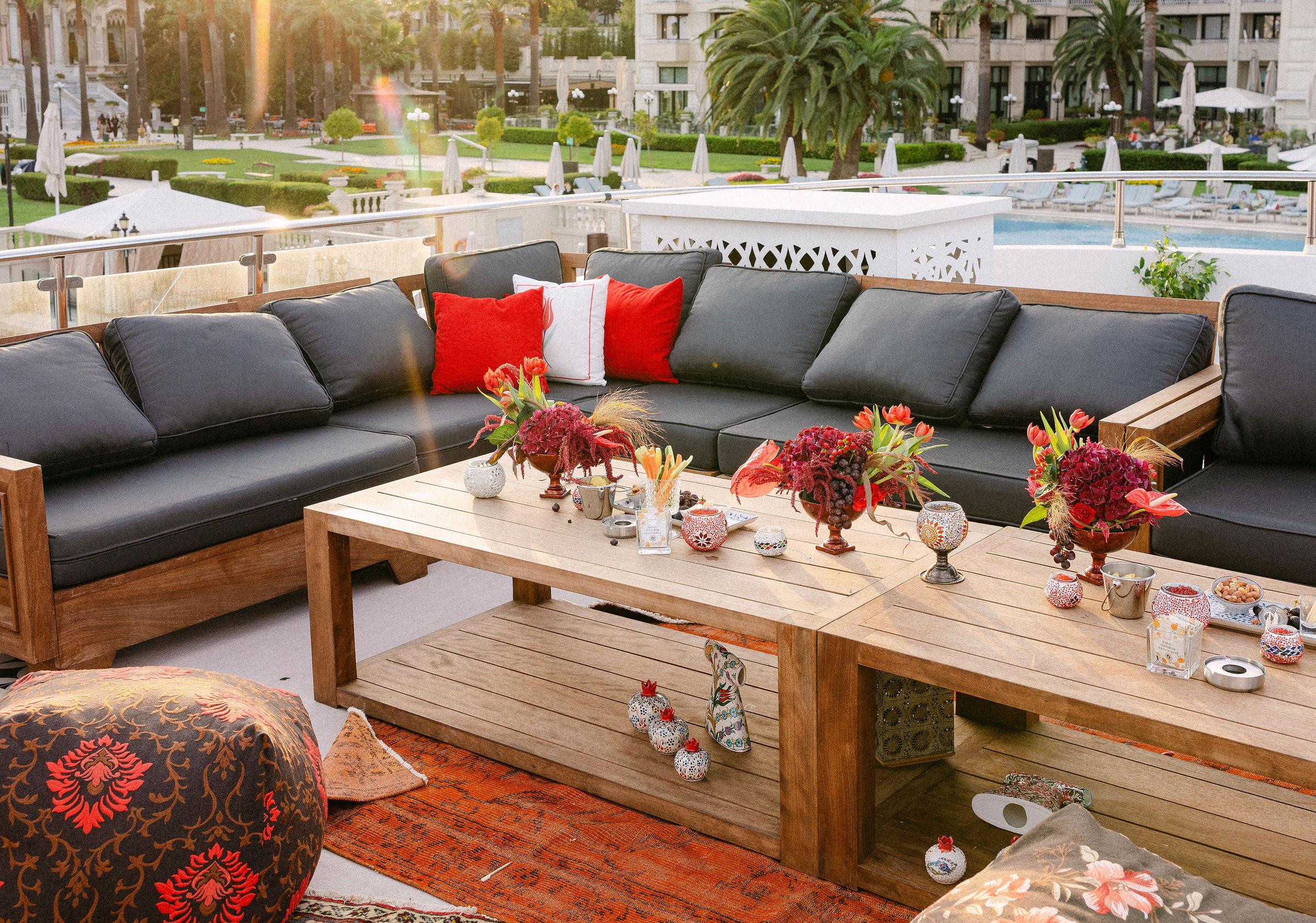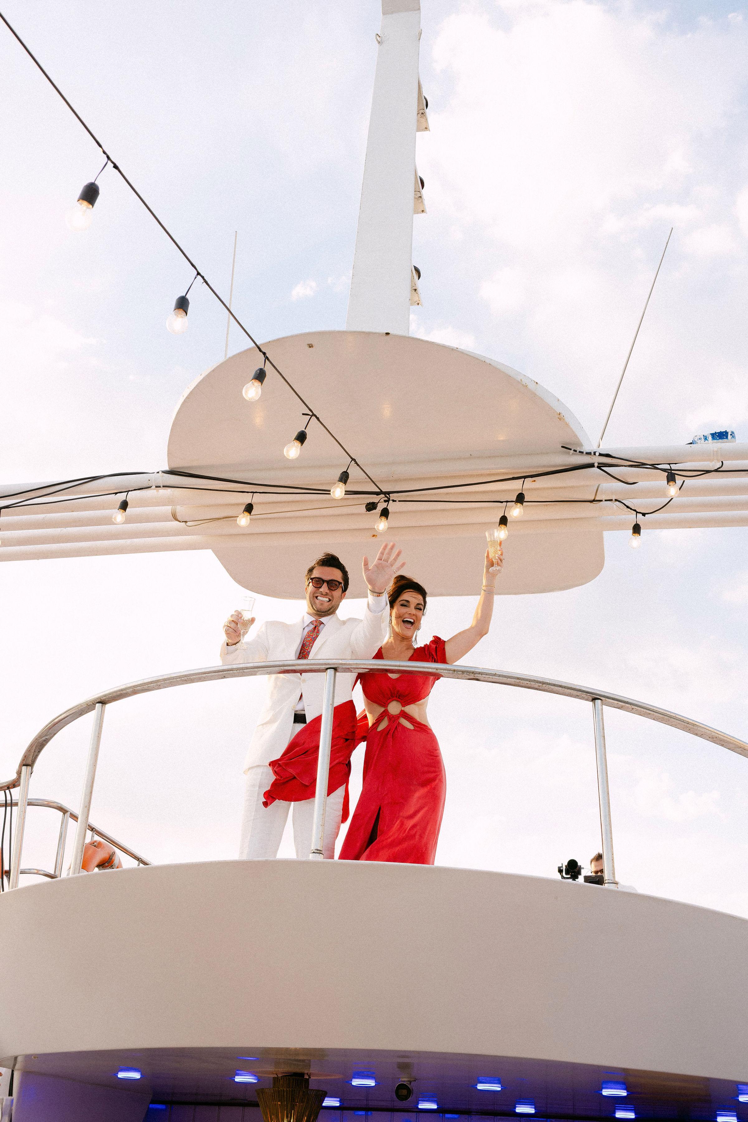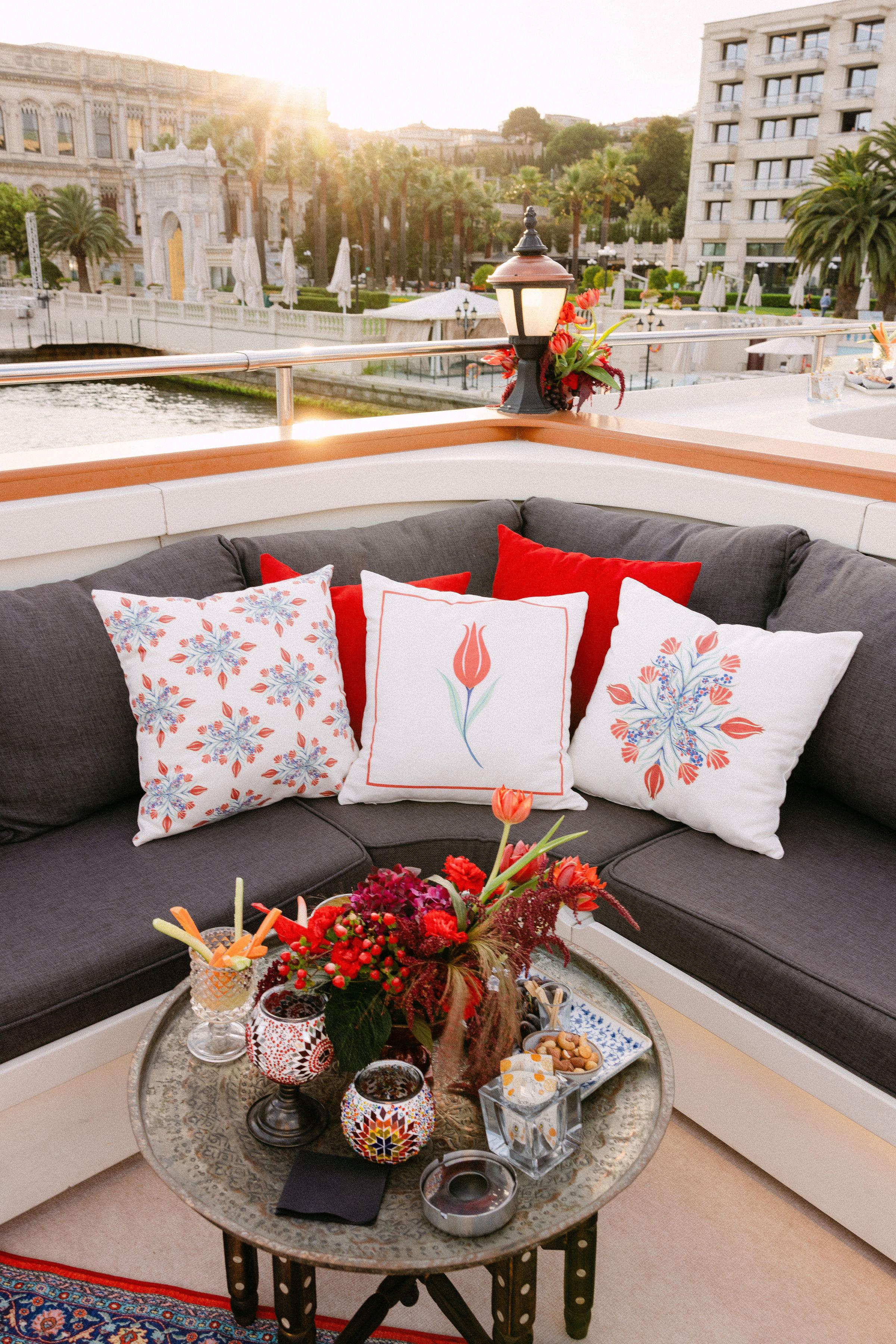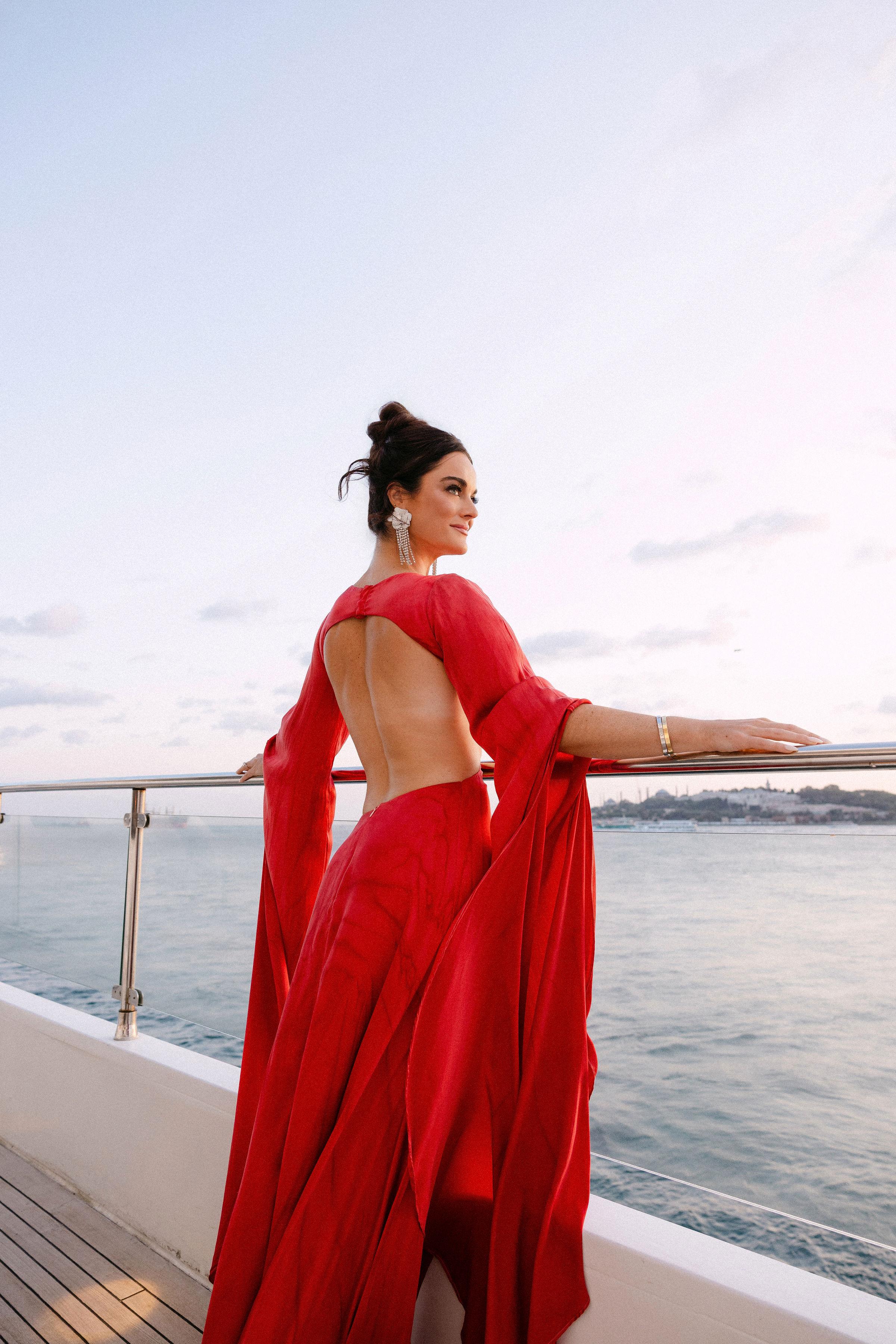 Düğün haftasının heyecanı, Çırağan Sarayı’ndan hareket eden özel bir tekne turuyla, İstanbul’un kalbinde başladı. Abbey ve Mete’nin yurt dışından gelen misafirleri için hazırladığımız bu "Welcome Party", geleneksel Türk misafirperverliğini modern lüks deneyimlerle birleştirdi ve düğün hafta sonuna misafirler harika bir etkinlikle başladılar. Teknenin zemininden dekorasyonun en küçük detayına kadar özenle uyguladığımız kırmızı beyaz konsepti, İstanbul Boğaz’ının lacivert sularıyla kusursuz bir kontrast oluşturdu. Tüm misafirlerin beyazlar içinde katıldığı gecede, sevgili Abbey, Cult Gaia tasarımı elbisesiyle İstanbul’un ışıkları altında adeta parladı. İmza kokteyller, teknede yankılanan müzikler ve İstanbul Boğaz’ının serin esintisi eşliğinde gerçekleşen bu gece; sadece bir kutlama değil, İstanbul’u bir destinasyon düğün rotası olarak seçen Abbey ve Mete ile misafirler için unutulmaz bir deneyime dönüştü.